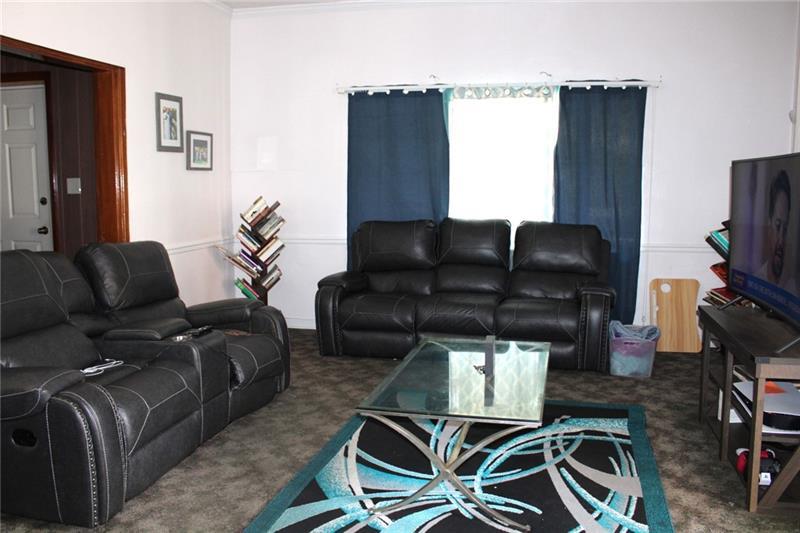 Wow! A massive duplex on a corner lot with an abundance of natural light pouring in through the numerous windows. It features two spacious porches. The first-floor unit includes 2 bedrooms, 1 full bathroom, and an additional toilet off the kitchen. There's a roomy kitchen, a dining room, and a large living room perfect for a big-screen TV, along with a hallway offering storage space. The second-floor unit is truly remarkable, spanning two stories with incredible natural light. It has 2 bedrooms, a spacious eat-in kitchen, a dining room, and a huge living room with a decorative stone fireplace. There's also a small room ideal for an office. The third floor boasts a large bedroom with a massive walk-in closet. The second floor also provides access to the basement with laundry facilities and an oversized 4-car garage. separate gas and electric. landlord pays water/sewage.
