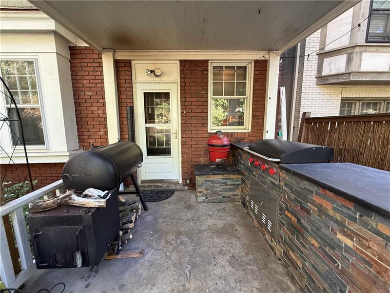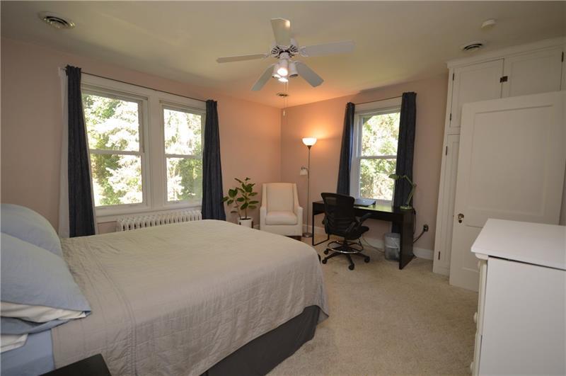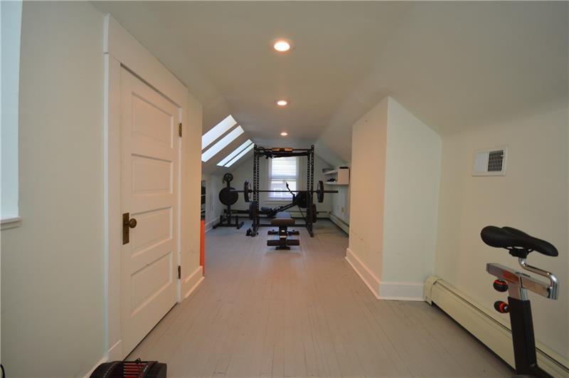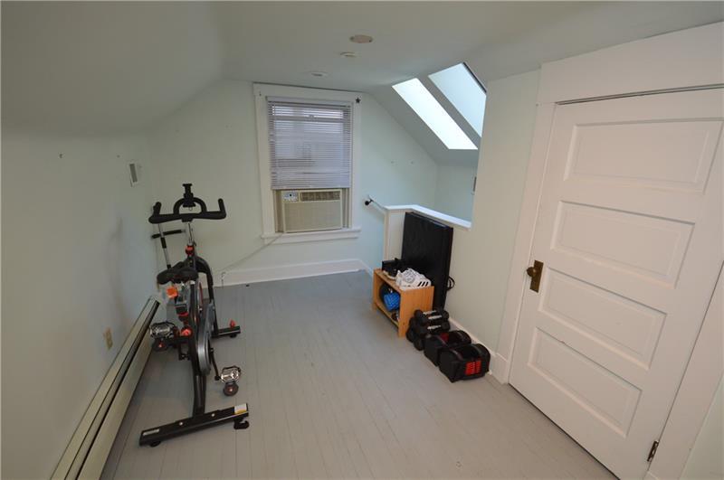 Charming craftsman-style home with stunning wood floors, perfect for entertaining or relaxing nights in. A covered front porch spans the entire width of the house. The spacious living room accommodates various seating and TV setups. The dining room features wood beams, and the gorgeous new kitchen is designed for cooking and baking. Outdoors, enjoy grilling with a built-in grill and counter space, plus a multi-tiered yard ideal for gardening. The primary bedroom includes an ensuite bath, large closets, and a gas fireplace. Two generously sized bedrooms and a full bath complete the second floor. The third floor, with skylights, spans the width of the home and is perfect for an art studio, workout room, or bedroom. A large open basement with a Pittsburgh potty and a one-car garage completes this lovely home.