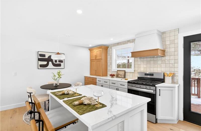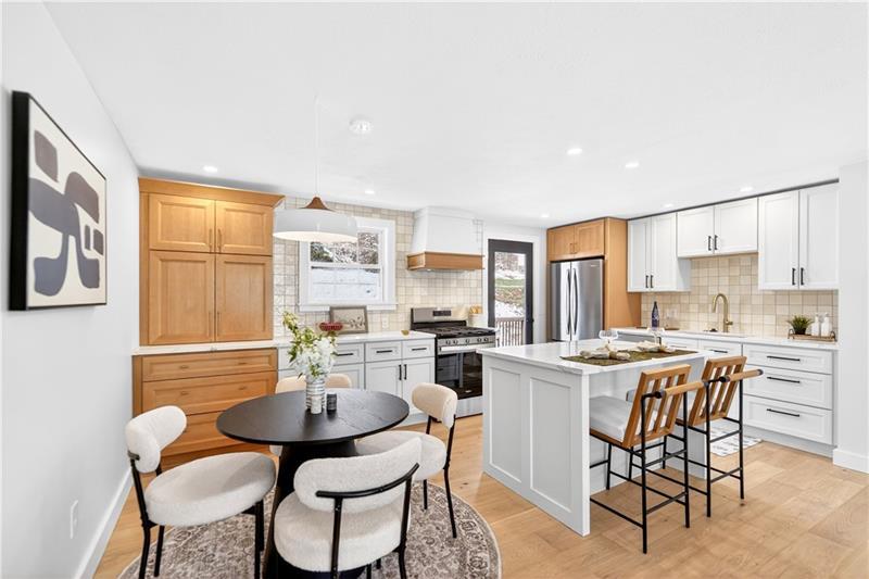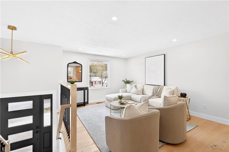 ~ Fully reimagined from top to bottom, this stunning renovation in the desirable Fox Run neighborhood showcases exceptional craftsmanship and attention to detail at every turn - truly a home that must be experienced in person. ~ All-new systems including new PEX plumbing, roof, electric service, furnace, A/C, hot water tank, and much more - offering complete peace of mind. Inside, enjoy engineered hardwood floors, contemporary color scheme, and trendy lighting paired with custom touches like bespoke wood railings, solid core doors, and designer finishes throughout. The chef's kitchen is a true centerpiece, featuring a two-tone design, custom hood vent, gas range, island with built-in microwave shelf, and spacious dining nook"”perfect for cooking and gathering. Two beautifully finished full bathrooms, one on each level, highlighting tasteful tilework and stylish vanities. The finished basement adds valuable living space with a sleek fireplace, a thoughtfully designed laundry room, ample storage, and durable luxury flooring. Outside, the modern curb appeal shines with new exterior doors, garage door, fresh hardscaping, concrete work, and a striking wood accent above the entry. A double-wide driveway and vaulted rear porch complete the package"”ideal for relaxing or entertaining. Located in the heart of Cranberry Township within the Seneca Valley School District, this home offers exceptional convenience"”just minutes from shopping, dining, parks, and major routes including I-79 and the PA Turnpike. This is a true turnkey home blending modern design, quality construction, and everyday functionality.