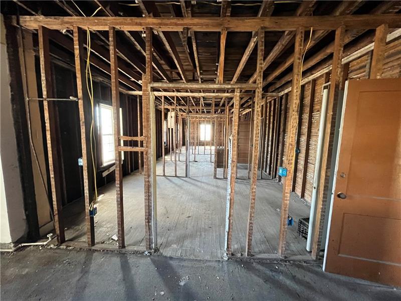 THE BUILDING IS TWO-STORY WITH 5,000 SF. BOTTOM FLOOR COULD BE SET UP AS A RESTAURANT OR RETAIL SPACE CLOSE TO HIGHWAYS, SHOPPING CENTERS, AND INDUSTRIAL BUSINESSES. THE 2600 SF FIRST FLOOR IS AN OPEN FLOOR PLAN THAT HAS A KITCHEN AREA THAT COULD BE SET UP FOR A RESTAURANT WITH A HOOD AND VENT ALREADY IN PLACE. THE SECOND FLOOR HAS BEEN USED IN THE PAST AS RENTAL ROOMS WHICH COULD STILL BE AN OPTION WITH SOME TLC. THE AREA ON THE SECOND FLOOR IS DOWN TO THE STUDS, SO YOU CAN HAVE A BLANK SLATE. THERE IS A PARKING LOT TO THE RIGHT OF THE BUILDING ON THE FIRST FLOOR AND TWO OFF STREET PARKING SPACES BEHIND THE SECOND FLOOR AREA.