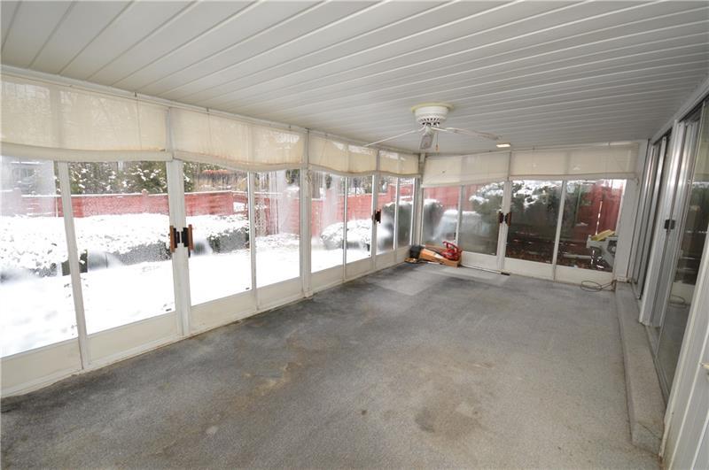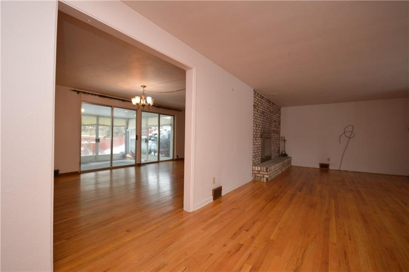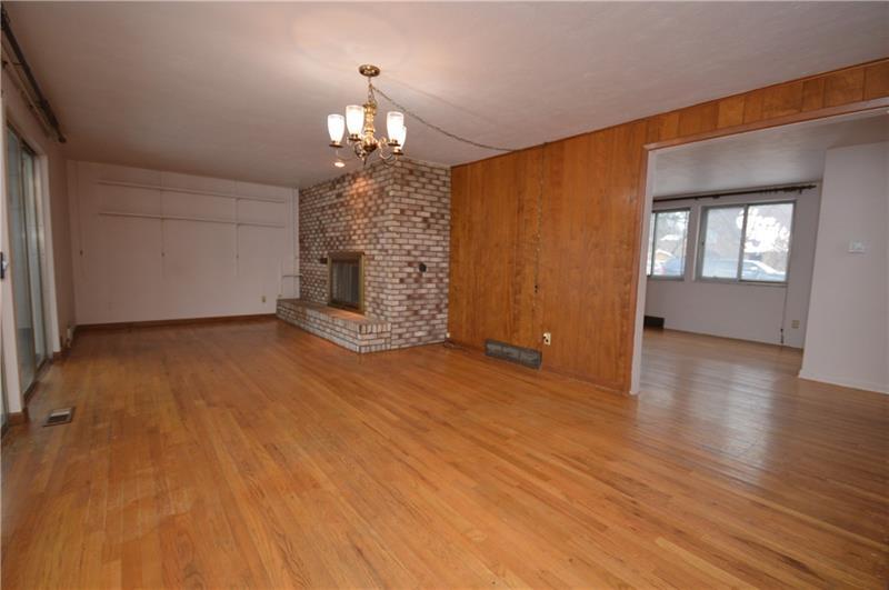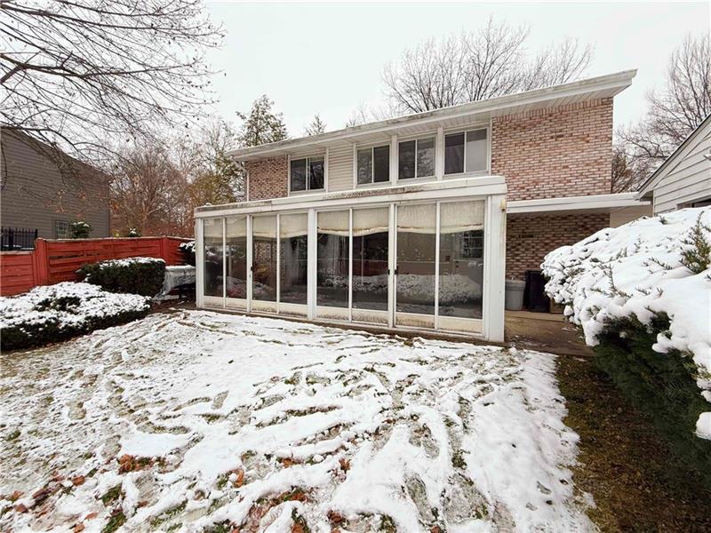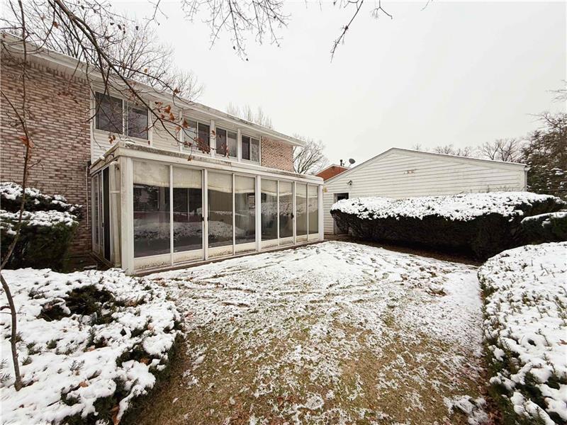 Wonderful opportunity to update this home and make it your own. Elegant double front door. Lovely wood floors. Brick fireplace spanning living and family room. (Seller never used and does not know it if is functional.) large three season room off of family room. Unique design. Large windows brighten stairs between first and second floor. Four bedrooms, primary with ensuite full bathroom. half bath on main floor. Large open basement, plenty of space for game room or movie room. Detached garage, 2 cars, though not huge ones. Front and side porch, sit out and enjoy watching nature.